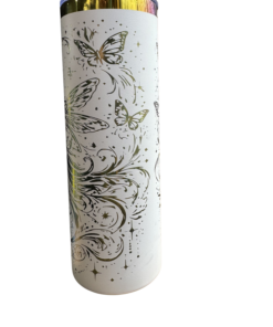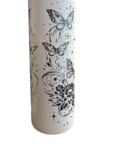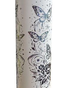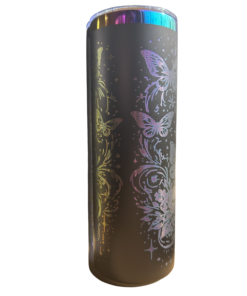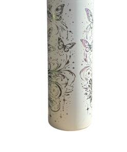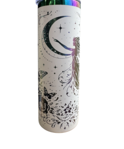 Step into a world of quiet beauty and celestial charm with this stunning 20 oz iridescent fairy tumbler. Designed to capture the serenity of a moonlit night, this piece showcases a graceful fairy surrounded by delicate butterflies and shimmering stars, creating a scene that feels both ethereal and refined.